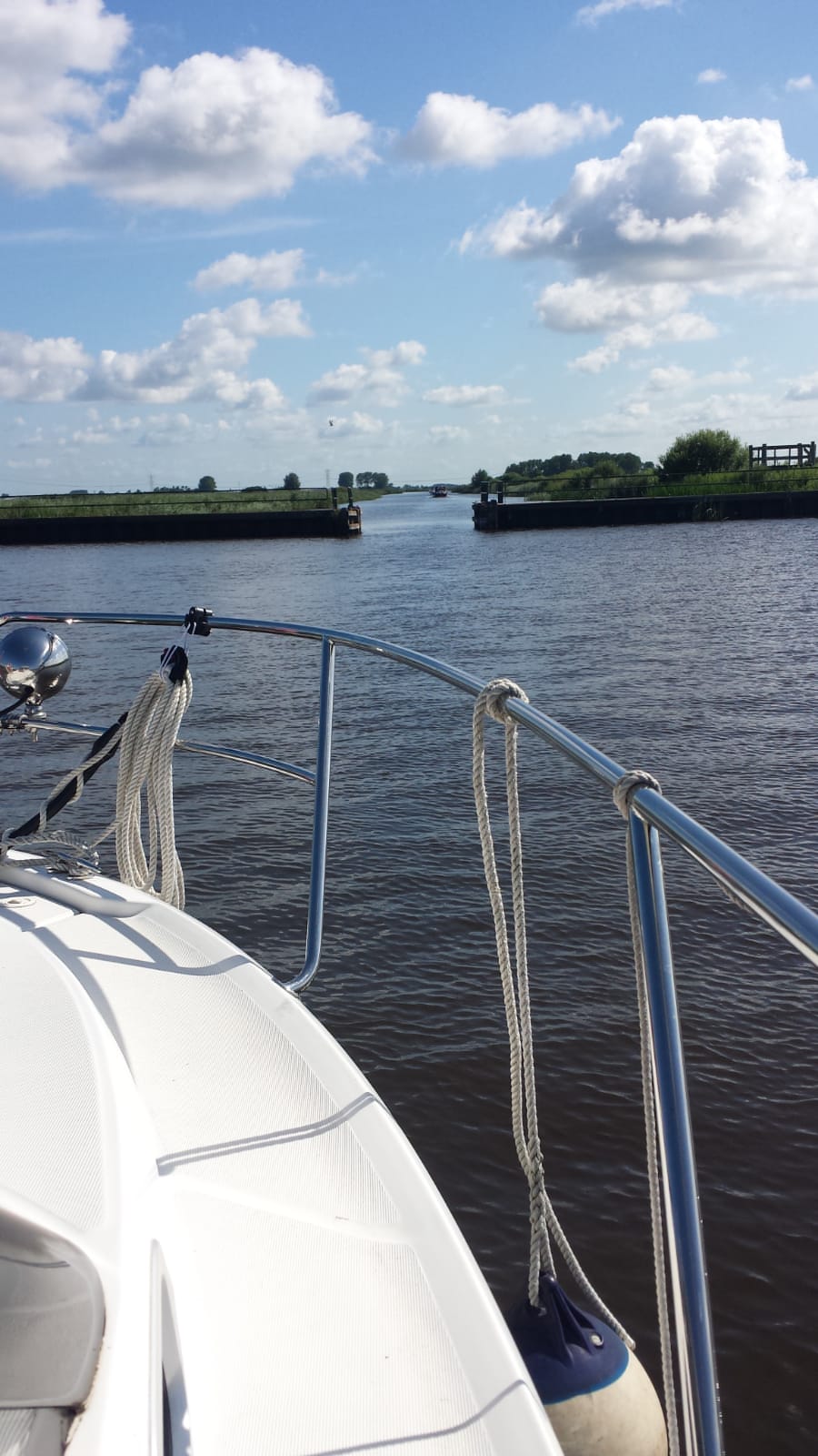 Gegen 10 Uhr verabschieden wir uns von meiner Frau und machen die Leinen los, unser Ziel heute ist De Kluft in Ossenzijl. Eine halbe Stunde später erreichen wir die Beukersluis, die erste und einzige Schleuse für heute. Als wir ankommen ist die Kammer gerade unten und wir müssen am Sportbootanleger warten. Kurz darauf geht das Tor auf, einige Boote verlassen die Kammer und wir bekommen Grün zur Einfahrt. Ich fahre weit nach vorne, da mittlerweile noch zwei weitere Boote eingetroffen sind, die ebenfalls mit wollen. Der Fall beträgt wie immer nur knapp einen Meter und wir können auch schon wieder ausfahren. Reika hat sich inzwischen beruhigt und schaut sich auch ab und an wo wir denn herfahren.